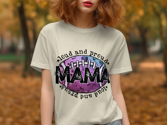 Loud And Proud Mama Football Graphic Design T-Shirt DTF TRANSFERS - TSHIRT / APPAREL - READY TO PRESS