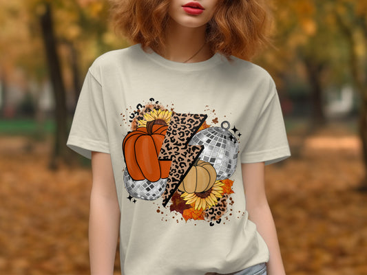 Pumpkin Disco Balls and Sunflowers DTF Transfer - Ready to Press - TShirts